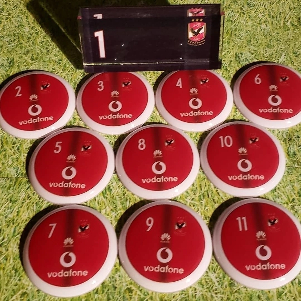 Contém 1 time com 10 jogadores em lentes de poliestireno cristal de 45mm de diâmetro + goleiro oficial de acrílico + palheta e bolinha de pastilha.