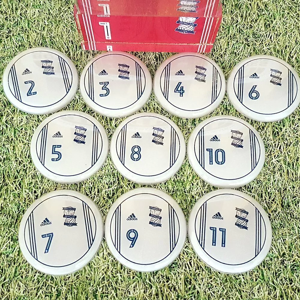 Contém 1 time com 10 jogadores em lentes de acrílico de 45mm de diâmetro + goleiro oficial de acrílico + palheta e bolinha de pastilha.
