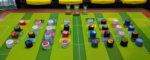 Os 32 times nas cores da foto + uma Taça miniatura. (igual a da foto.