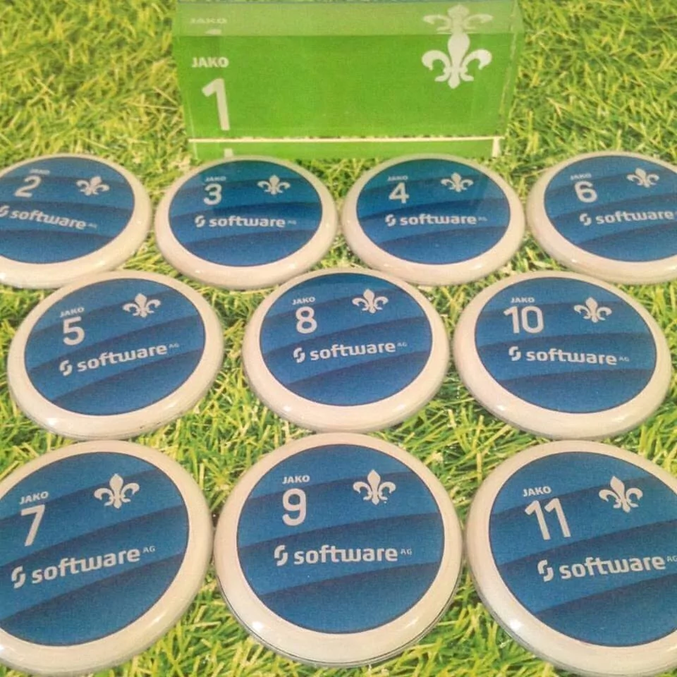 Contém 1 time com 10 jogadores em lentes de acrílico de 45mm de diâmetro + goleiro oficial de acrílico + palheta e bolinha de pastilha.