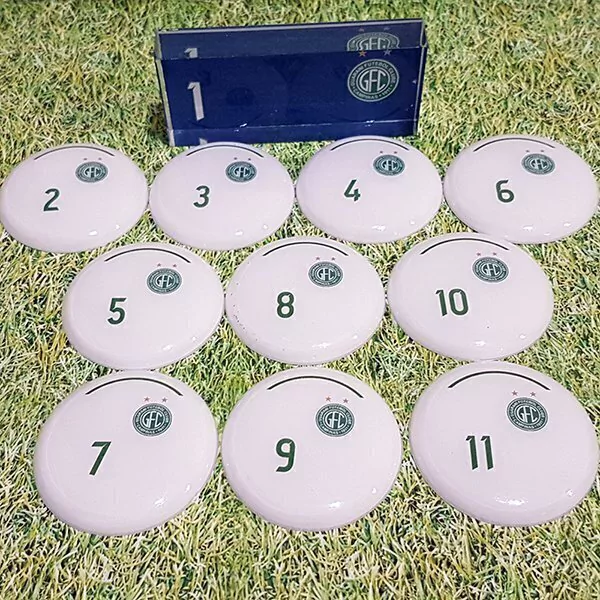Contém 1 time com 10 jogadores em lentes de acrílico de 45mm de diâmetro + goleiro oficial de acrílico + palheta e bolinha de pastilha.