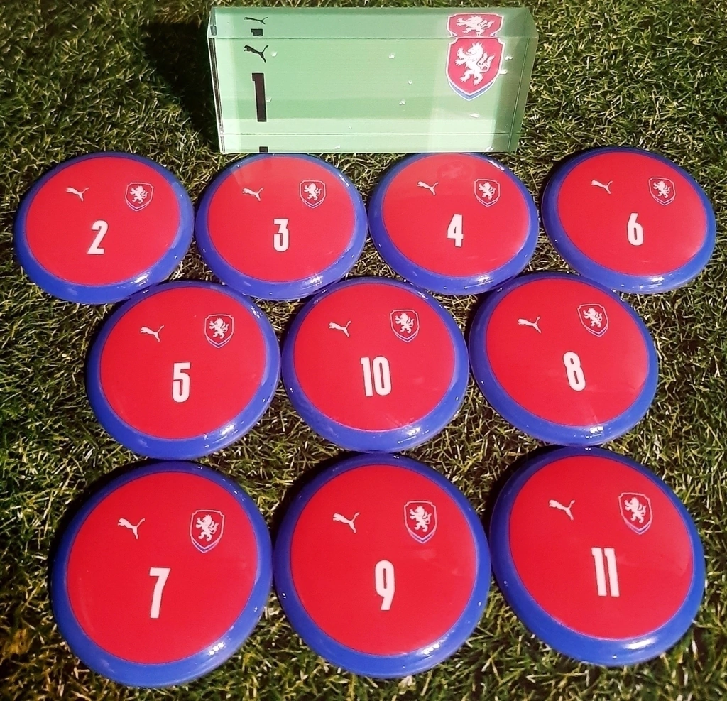 Contém 1 time com 10 jogadores em lentes de poliestireno cristal com 45mm de diâmetro + goleiro oficial de acrílico (8x3,5cm)+ palheta e bolinha de pastilha.