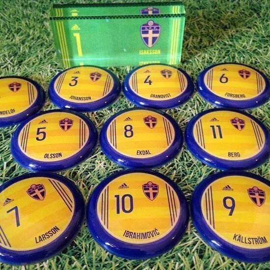 Contém 1 time com 10 jogadores em lentes de acrílico de 45mm de diâmetro + goleiro oficial de acrílico + palheta e bolinha de pastilha.