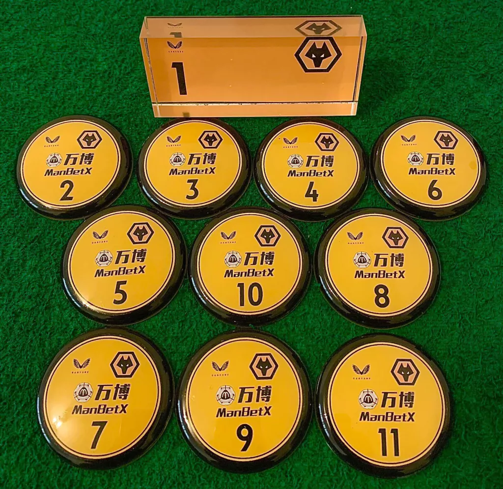 Contém 1 time com 10 jogadores em lentes de policarbonato de 45mm de diâmetro + goleiro oficial de acrílico + palheta e bolinha de pastilha.